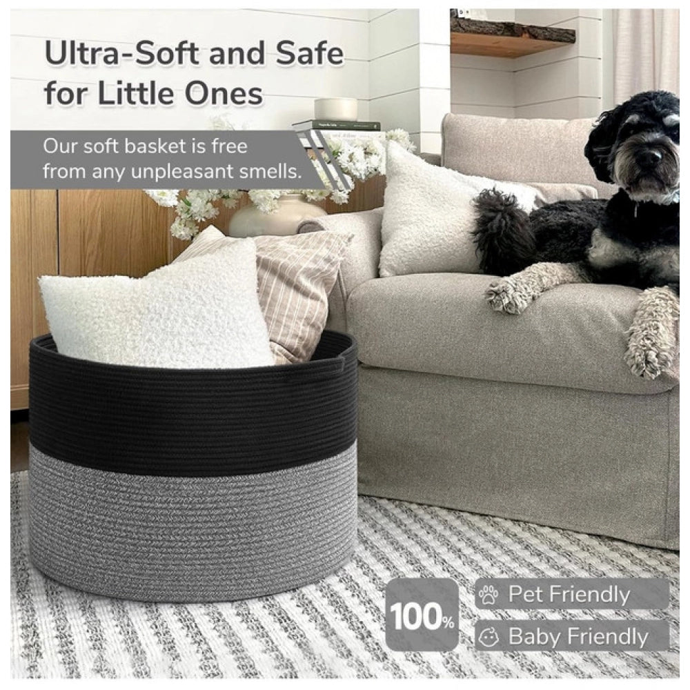 Generic Cotton 16x14 Inch Pack of 1 Storage Basket For Clothes (Black)
