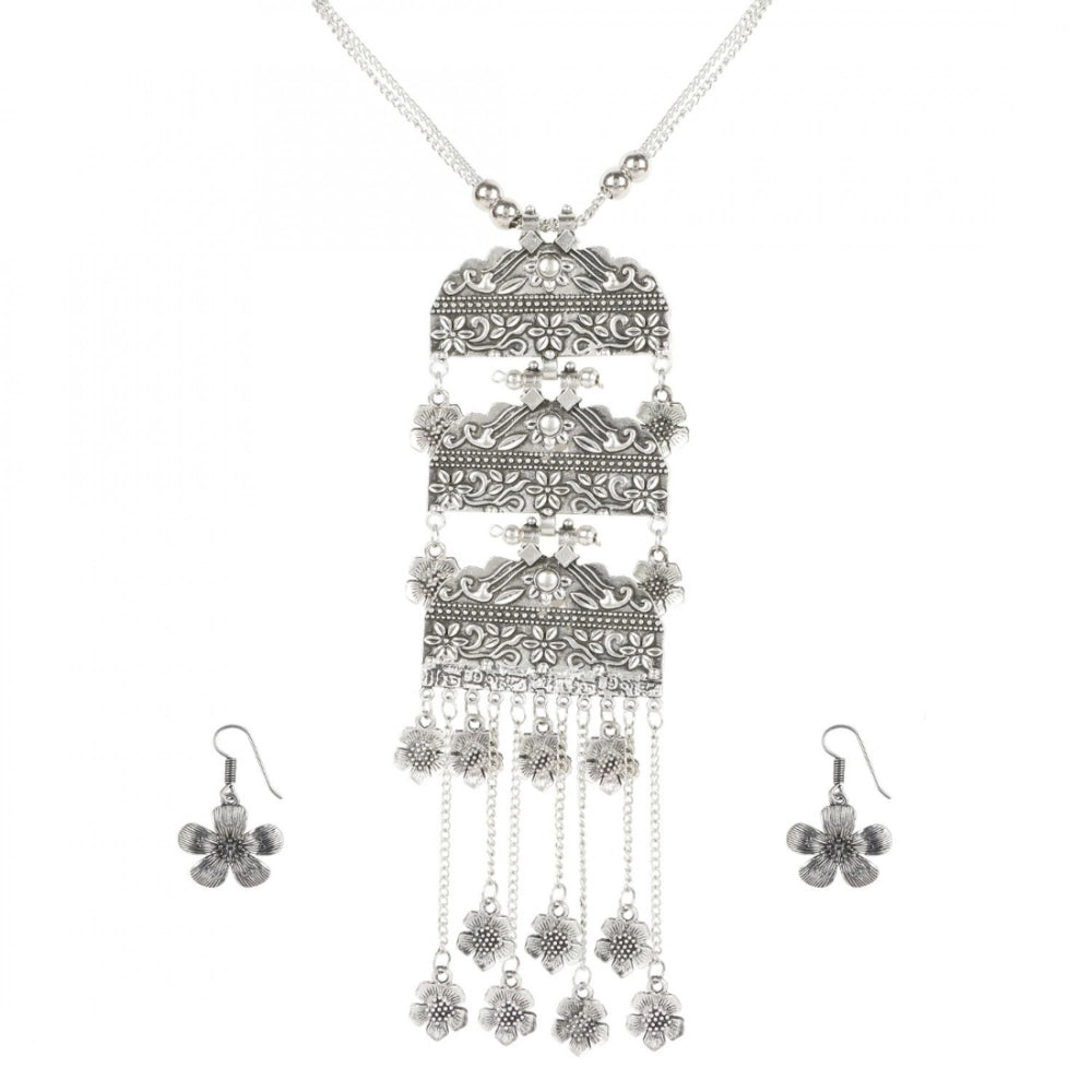 Designer German Silver Oxidized Necklace Set with Earrings,