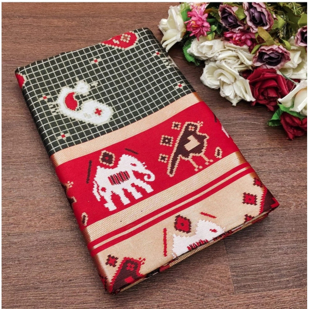Generic Women's Soft Litchi Silk Jacquard Work Saree With Unstitched Blouse 5.5Mtr (Black-Red)