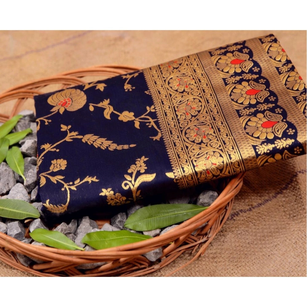 Generic Women's Soft Litchi Silk Jacquard Work Saree With Unstitched Blouse 5.5Mtr (Blue)