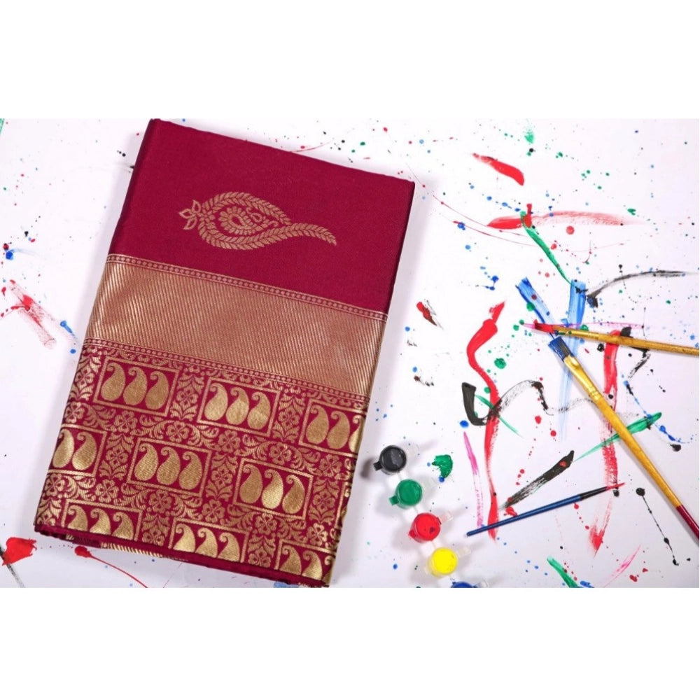Generic Women's Soft Litchi Silk Jacquard Work Saree With Unstitched Blouse 5.5Mtr (Maroon)