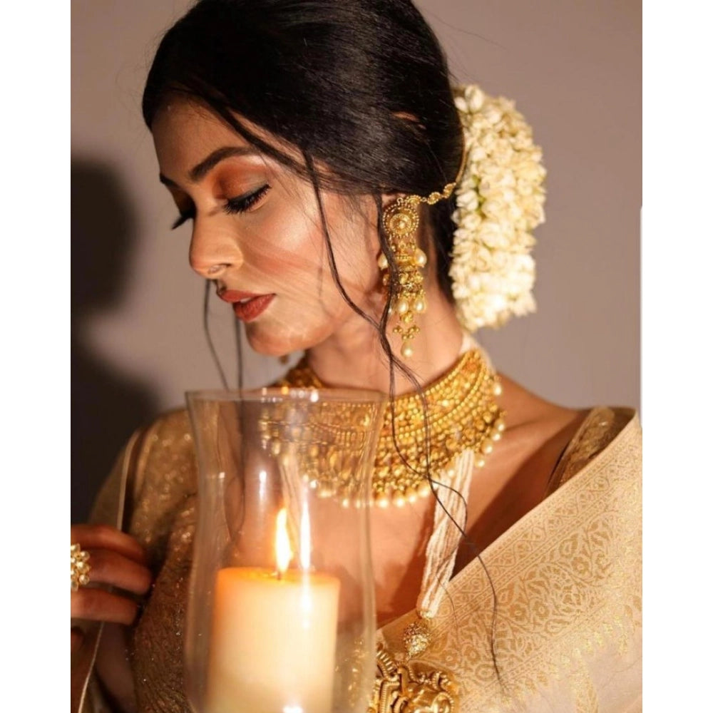 Generic Women's Soft Lichi Silk Printed Saree With Unstitched Blouse 5.5Mtr (Golden)